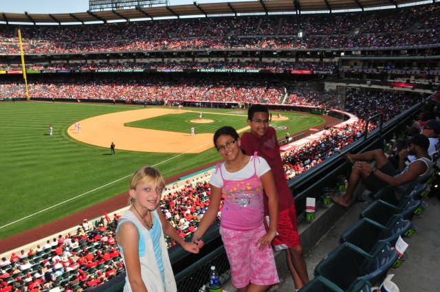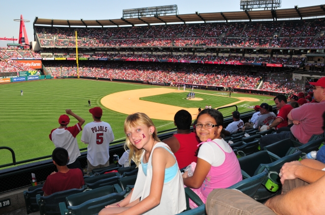 Dad, I, Melina, and Melina's friend Chelsea went to the Angel's home opening game. They played the Kansas City Royals. It was a really nice day. But the Angels lost 6 to 3.