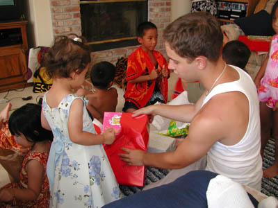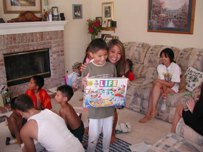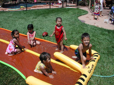 slide and pool party. Everyone brought cools gifts for Joshua and Melina.