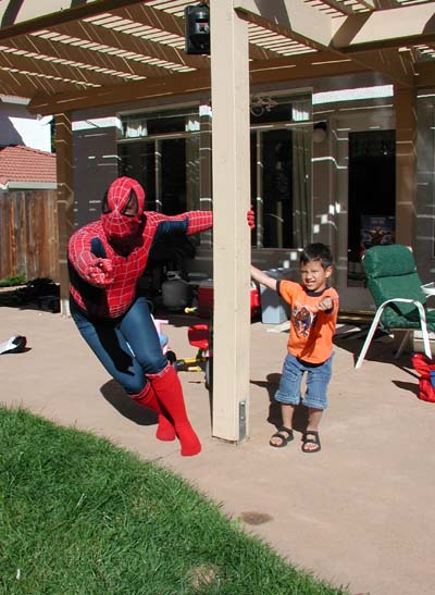 Today we had my birthday party. It was really fun. Spiderman showed up at our