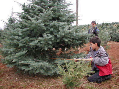 time before we found the right one. Then Joshua and Dad started to cut it down.