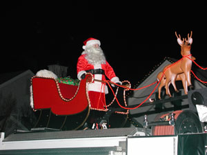 Santa came by to say hi. He rode on a fire truck. Melina and I gave Santa our