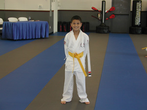 Joshua just got his gold belt in karate. He's been going to karate for