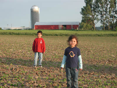 Melina and I got to play in the bean field next to Aunt Julie's house.