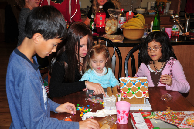 Melina, Jacqui, and I helped Ivy make a gingerbread house.