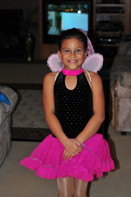 Melina was in a play at religion class. She was an angel and sang with