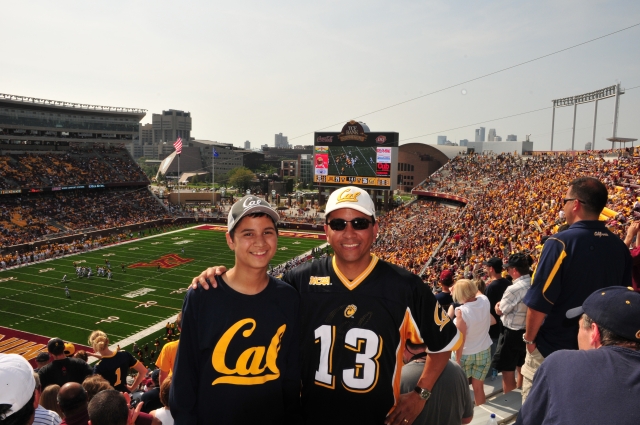 Dad and Josh went to a Cal football game, except it was in Minnesota! They said lots of people stared at them, but they had a good time. Cal won 35-21.