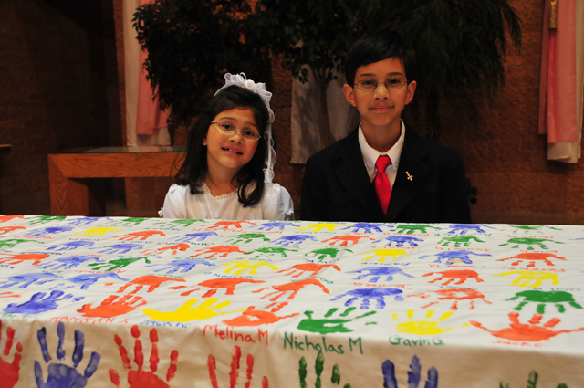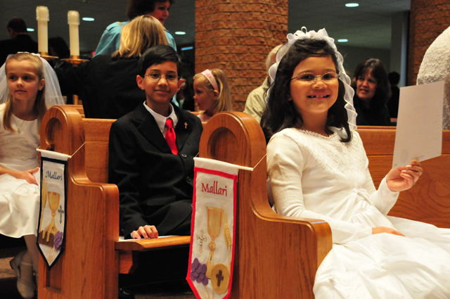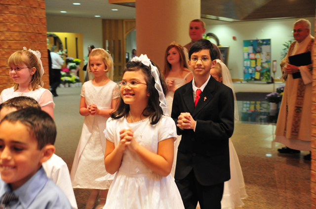 Melina and I had our First Communion today. It was really cool. We had