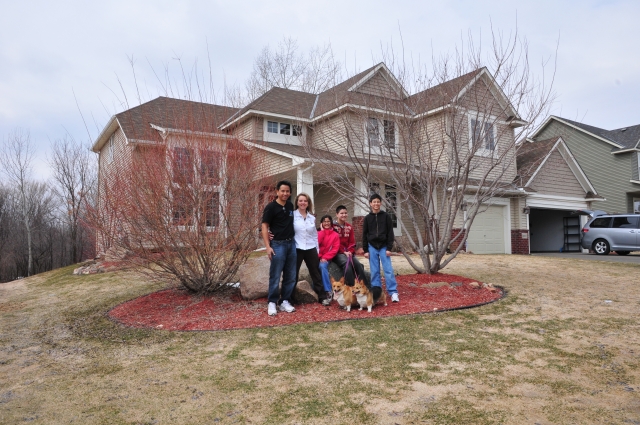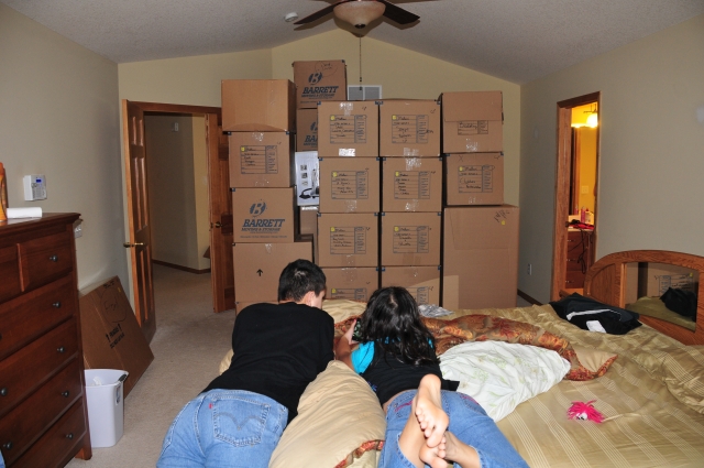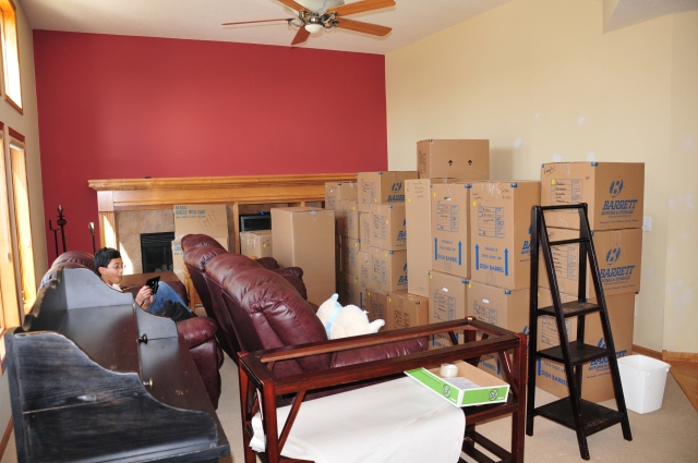 It's moving day. The movers spent 3 days packing up all of our stuff, and we took a final picture in front of our house. Then we got on a plane (so did Goldie and Luna) and flew to California. It was warmer, and the sunset was really cool.