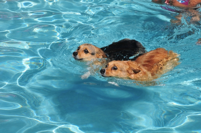 Melina and Josh decided to go swimming, and figured they'd see how Goldie and Luna like the pool. By the look of their eyes, I'd say they wanted to get out of the pool as fast as they could.