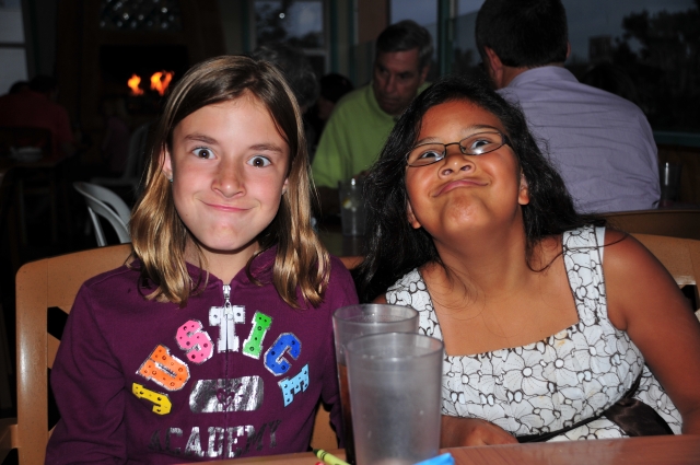 Melina's friend Sophia and Mom's friend Vera came out to California to visit. Sophia's brother and Dad came too. We had a good time at dinner in Laguna Beach. The weather was real nice. Sophia and Melina got to go to Disneyland too.