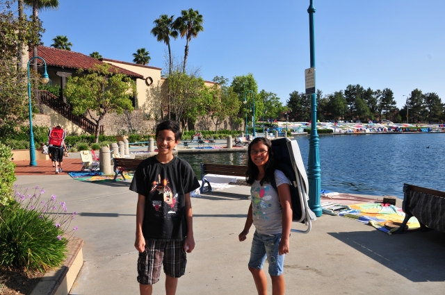 We watched the July 4 fireworks over Rancho Santa Margarita lake. Everyone lines the sides of the lake with blankets in the morning, and then they show up at night to sit down and enjoy the fireworks. So we did the same thing and it was really cool.